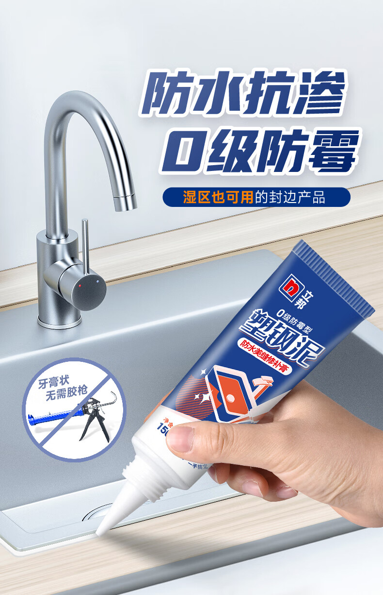 立邦塑钢泥防水防霉厨房卫生间美缝剂瓷砖填缝胶密封玻璃胶 白色150g