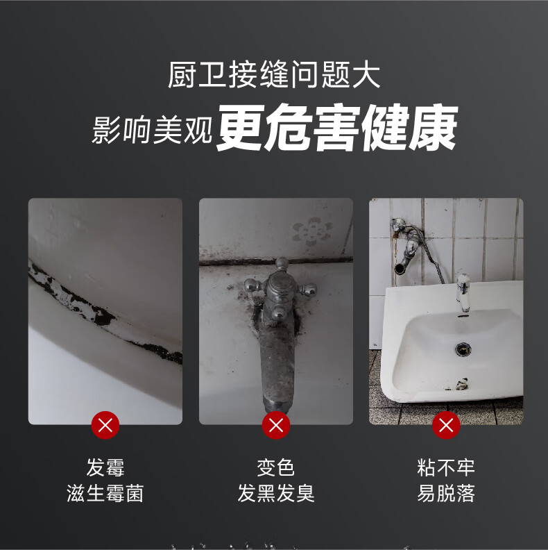 胶码氏 美边线自粘 美缝贴条加宽厨房防水防霉胶带石膏装饰自粘美缝贴水池灶台缝隙贴装饰艺术美边线密封条 贵族银