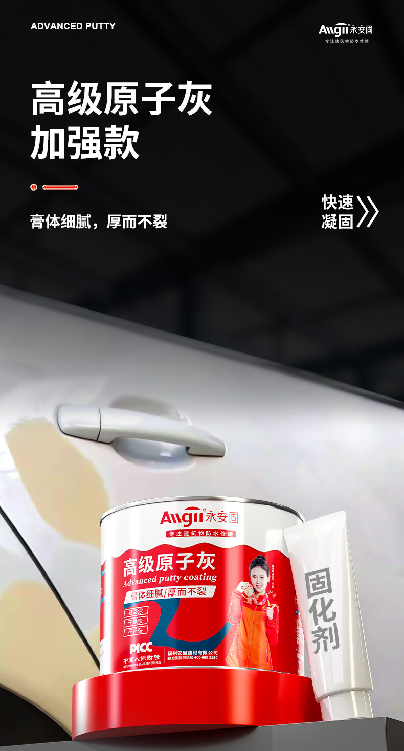 Allgll原子灰汽车腻子车用钣金修复填坑快干小补土补漆膏修补车漆固化剂
