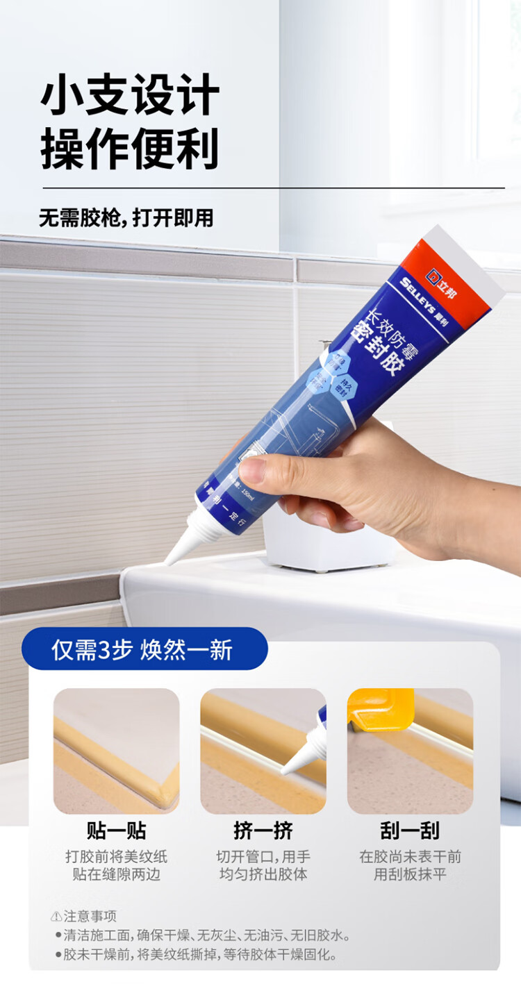 立邦塑钢泥防水防霉厨房卫生间美缝剂瓷砖填缝胶密封玻璃胶 白色150g