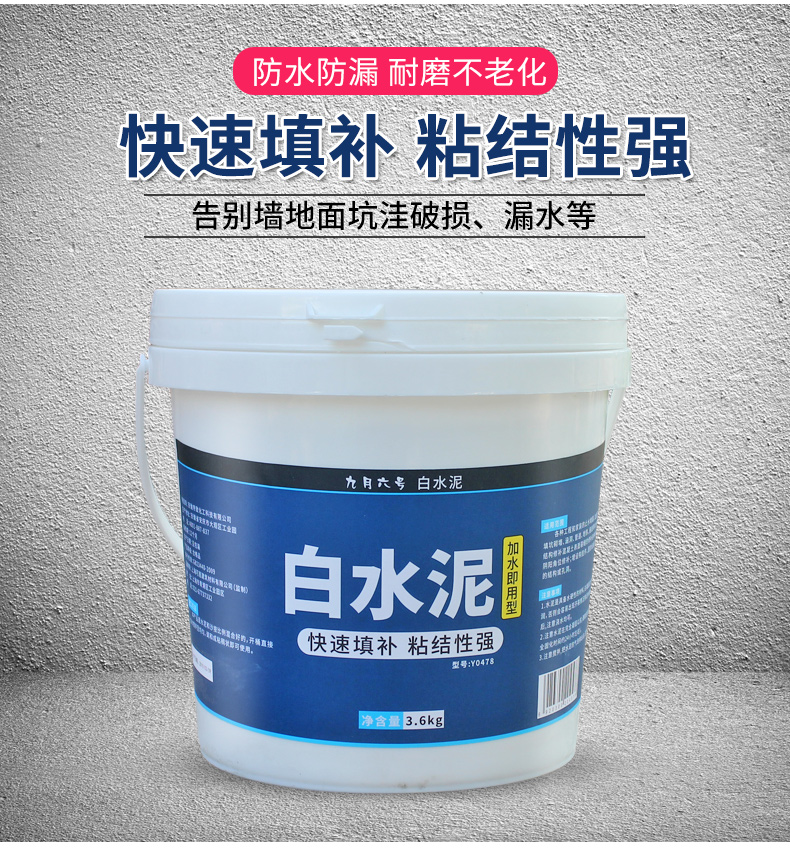 白水泥 速干防水家用墙面填缝剂水泥地面修补白色防水勾缝内墙防水墙面修补瓷砖填缝525高标白水泥 600g白水泥