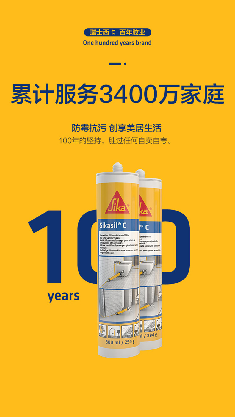 西卡德国进口C 12倍0级防霉玻璃胶防水中性厨卫生间美容密封胶 透明色