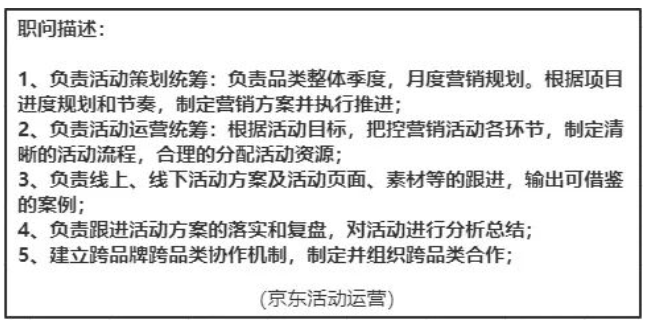 通过以下活动运营的招聘描述,能比较清楚了解活动运营的全能性。