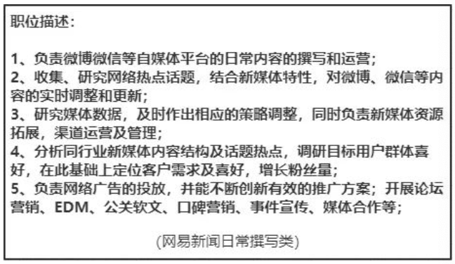 以下的内容生产类招聘描述中,可以很明显的感到与平台类内容运营的不同。