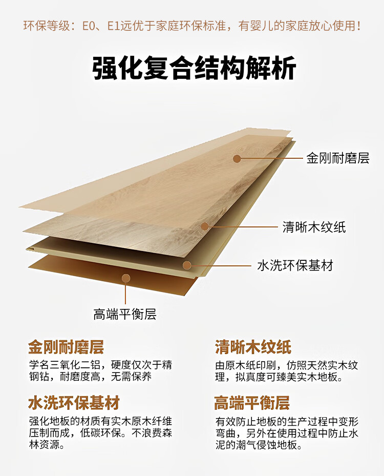 霍克林 强化复合地板 家用商用橡木纹防潮耐磨地热锁扣地板 工厂批发 H09