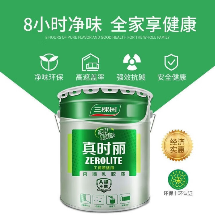 三棵树漆(SKSHU)厂家直销内墙乳胶漆,净重24公斤一桶,标准施工100个平方左右 原装白色 净重24公斤一桶