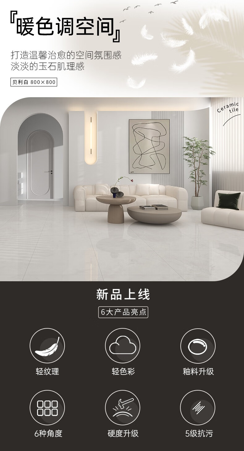 诺贝尔瓷砖 素色客餐厅 瓷砖800x800 现代简约地板砖 防滑地砖 贝利白