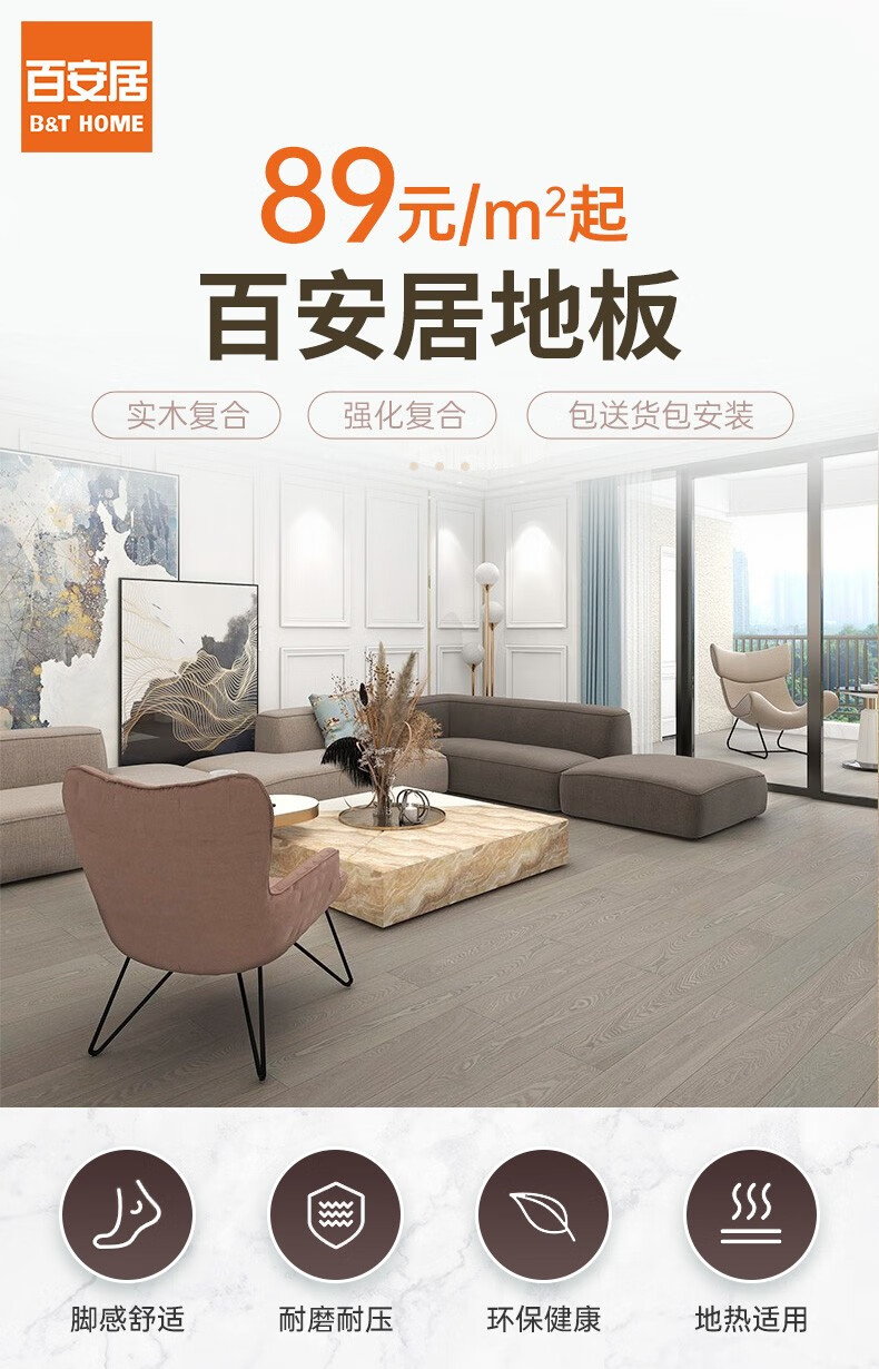 百安居地板定制特权订金 89/平方米起 强化复合实木 环保多色可选环保