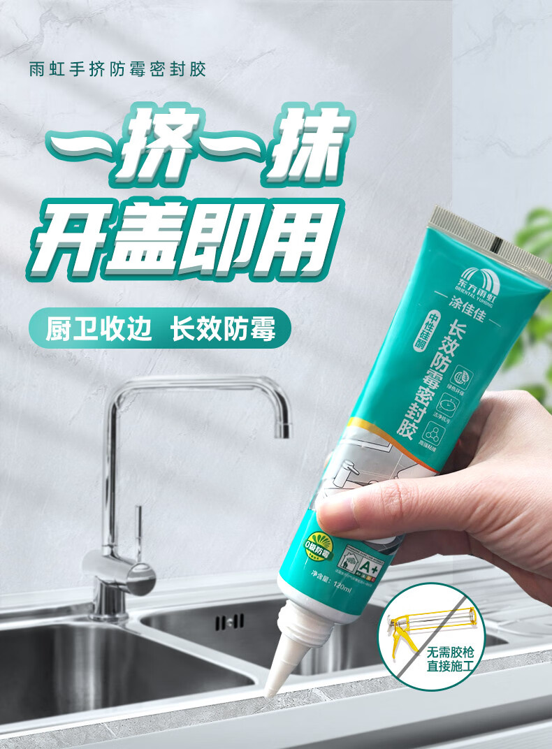 雨虹防水手挤密封胶玻璃胶 0级防霉 防水高弹 厨卫填缝马桶收边胶 透明